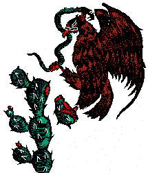 You have seen all that there is there down in the reeds... but listen; there is still another thing that you have not seen. Go at once and seek the tenochtli cactus upon which an eagle enjoys it prey. It is there that we shall fix ourselves, it is there that we shall rule, and it is there that we shall wait. We shall meet various tribes, and that, with our arrows and shields, we shall overthrow them. Our city of Tenochtitlan shall be there, there where the eagle cries, spreads is wings, and eats, there where swims the fish and there where the serpent is devoured, Tenochtitlan, it is there where many things shall occcur. | ||||||||||||||||